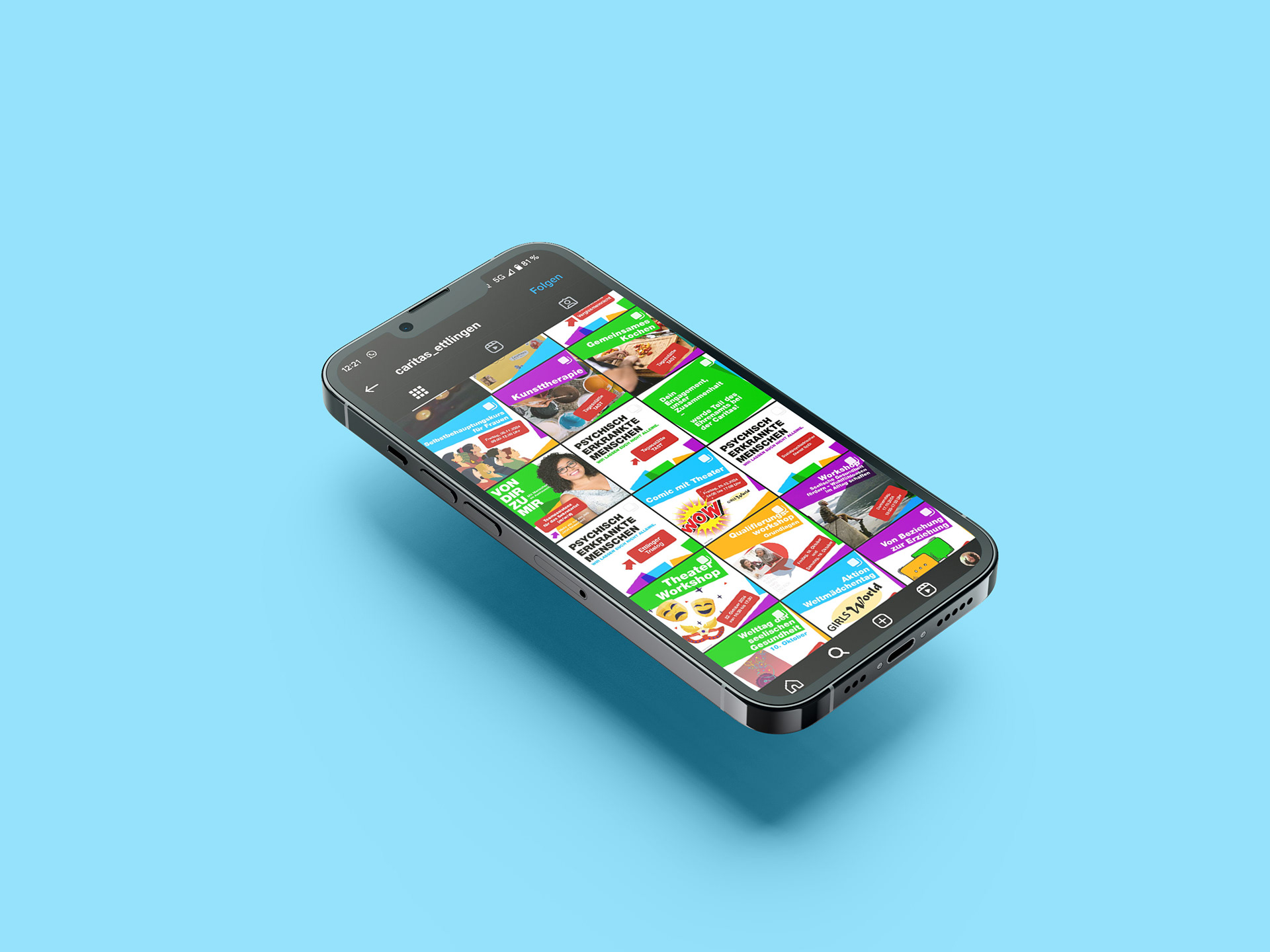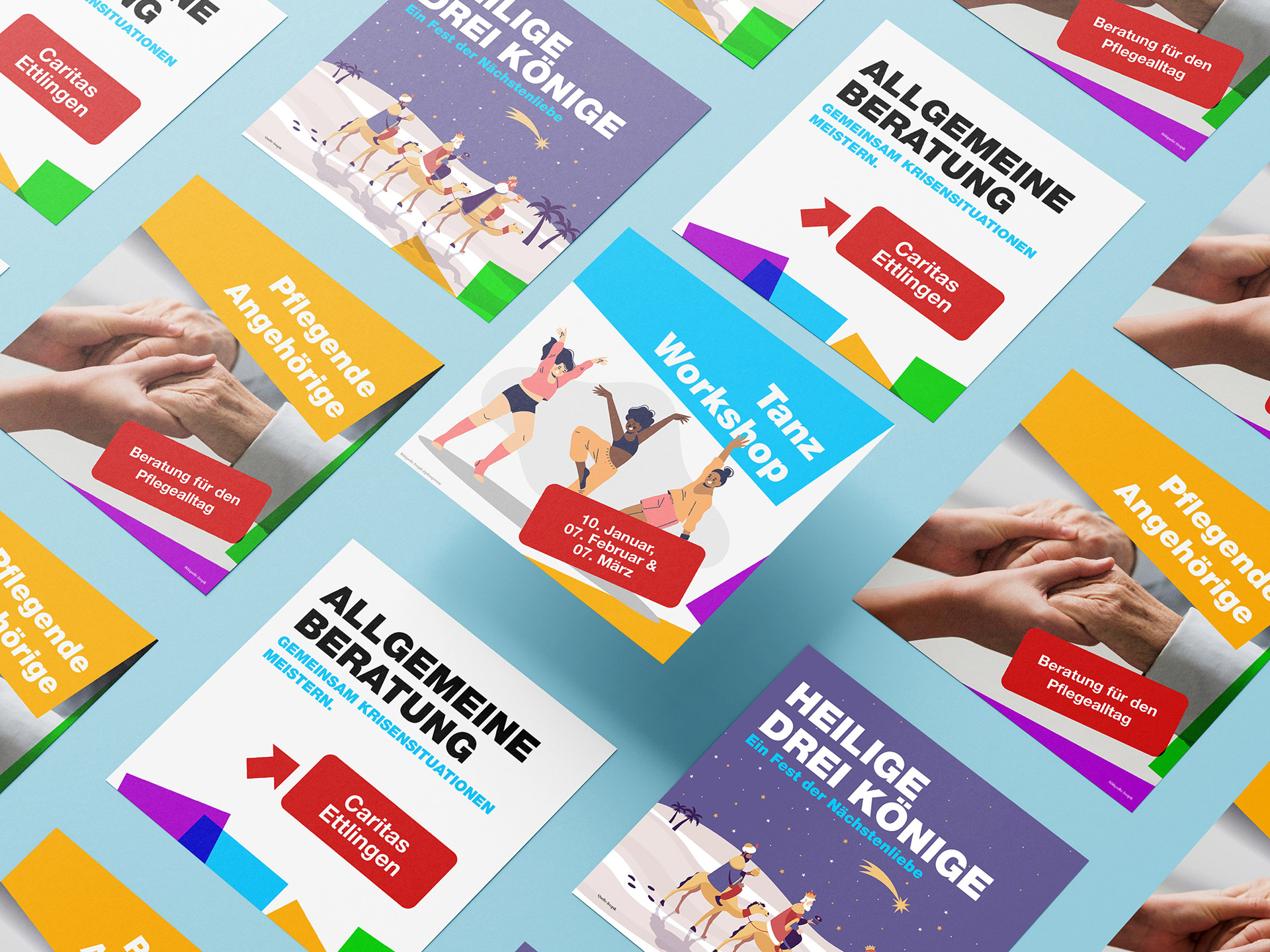 Für die Caritas Ettlingen habe ich vielfältige Social-Media-Inhalte erstellt, darunter Beiträge für Instagram und Facebook, Story-Formate sowie gezielte Werbeanzeigen. Alle Materialien wurden im Corporate Design der Einrichtung gestaltet und folgen einer klaren und wiedererkennbaren Gestaltung. So entsteht ein harmonisches und professionelles Gesamtbild, das die Angebote der Caritas klar und ansprechend kommuniziert.