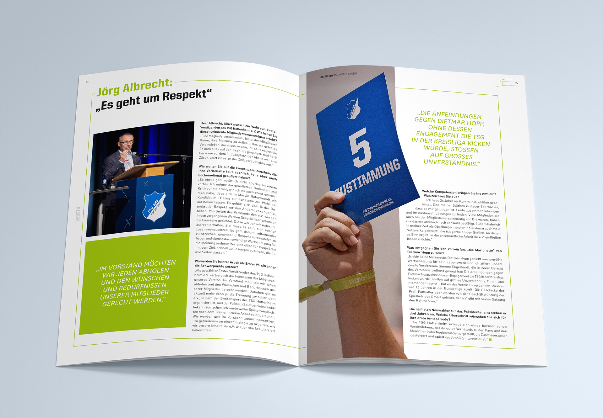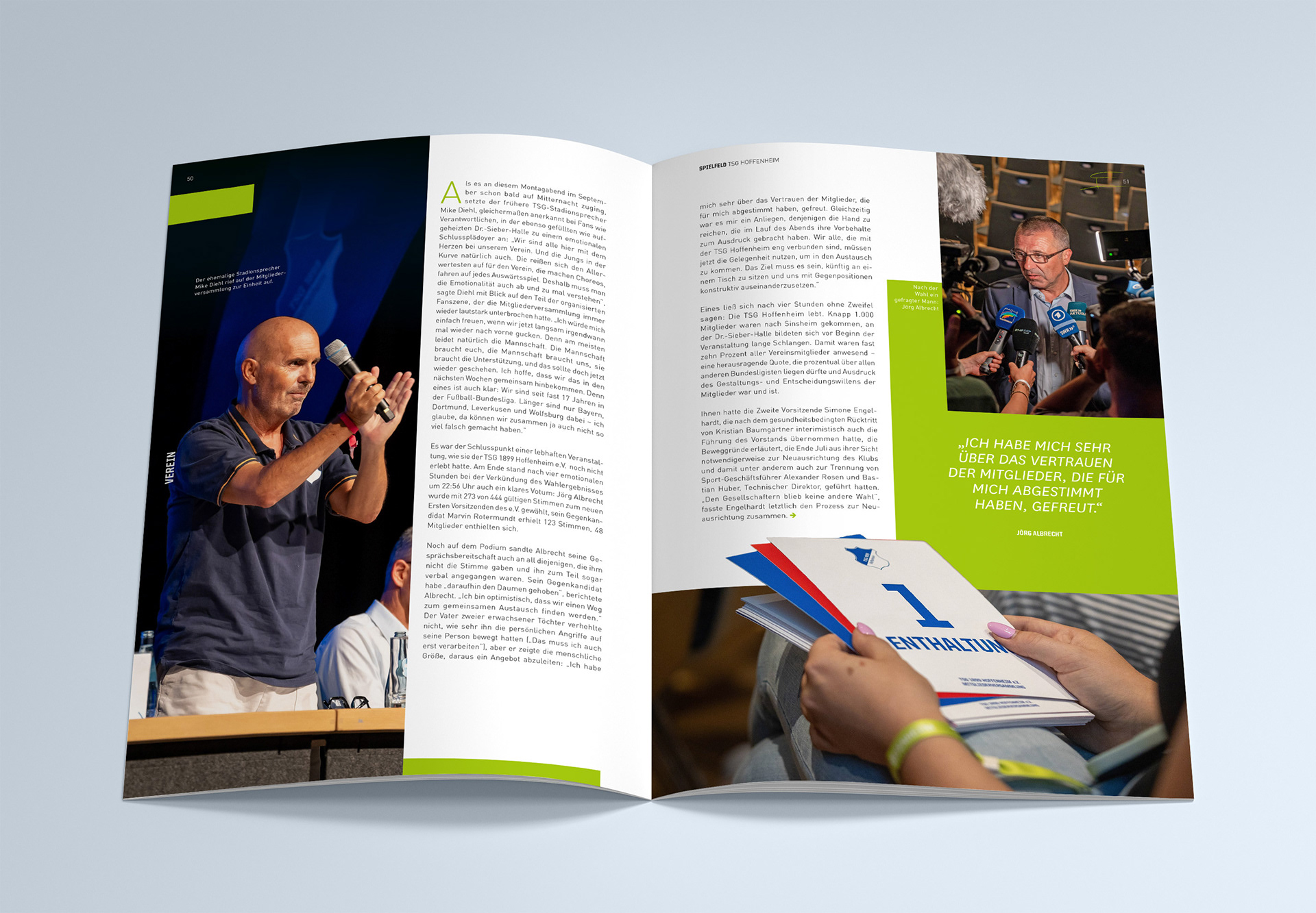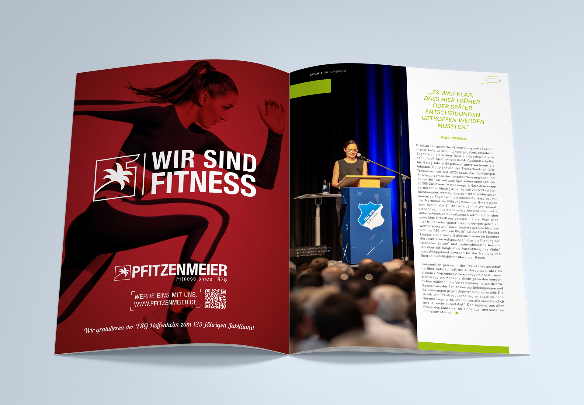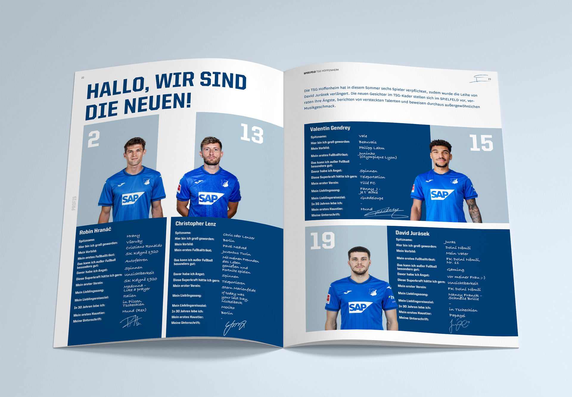 Während meiner Mitarbeit am Magazin "Spielfeld" war ich unterstützend in den Gestaltungsprozess eingebunden. Zu meinen Aufgaben gehörte die eigenständige Gestaltung einzelner Artikel, inklusive des gezielten Einsatzes des vorhandenen Bildmaterials, der strukturierten Einarbeitung der Texte sowie der Entwicklung spannender Layouts. Besondere Inhalte, wie zum Beispiel Zitate habe ich typografisch hervorgehoben, um visuelle Akzente zu schaffen.